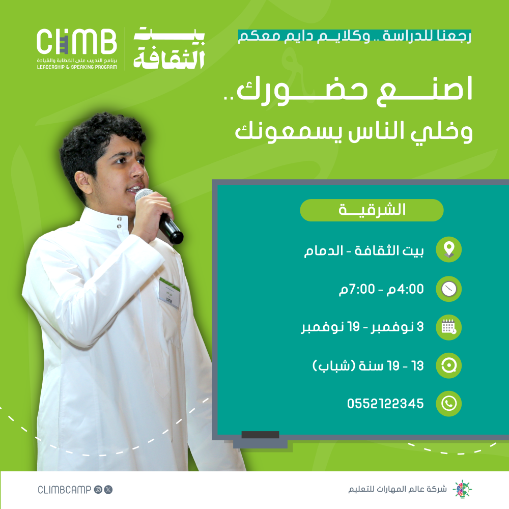 برنامج كلايم للخطابة والقيادة للبنين بالمرحلة المتوسطة والثانوية (بيت الثقافة)